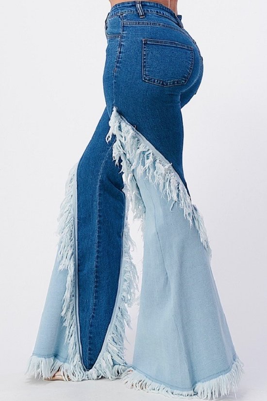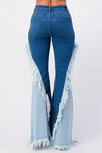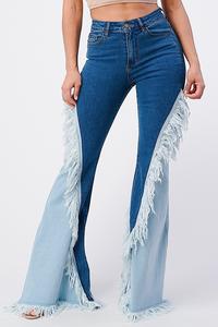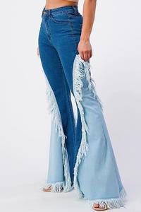 DetailsDescription: High Rise Shredded White Denim Flare JeansCategory: JeansFabric: DENIMContent: 98% cotton /2% spandex
