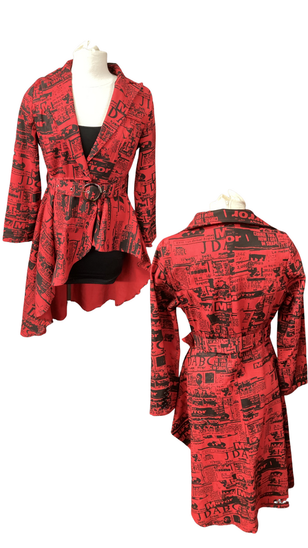 Denim  red black jacket. With a belt. High Low Size SML- 2X