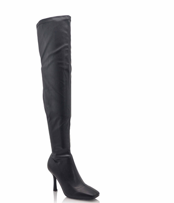 STRETCH PU OVER KNEEBOOTHEEL  Size:   7  * 71/2  * 8  *8 1/2  9  * 10 * 11
